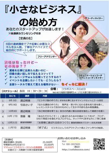 小さなビジネスの始め方/アドバンスコース (11月29日 12月13日 1月17日)