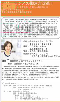 郡山市にあるコワーキングスペースco-ba koriyamaを運営されている三部 香奈 (Kana Sambe)さんを講師にお迎えしてのセミナーです。主催は中央会さんです。